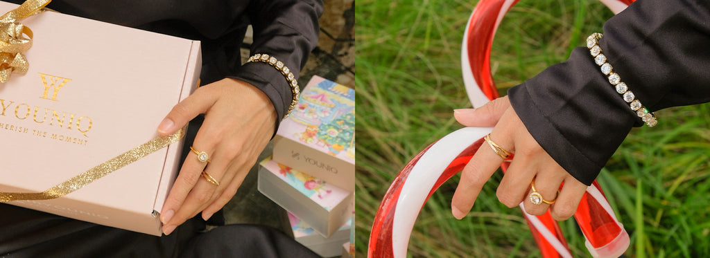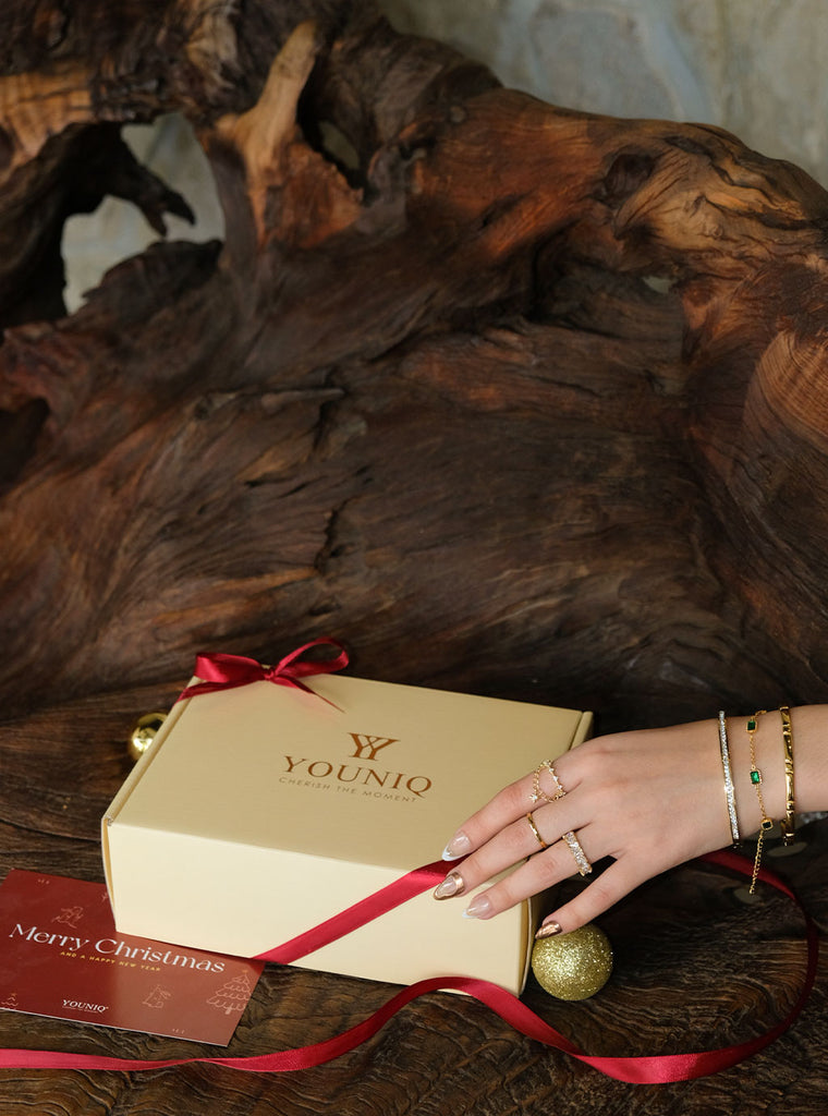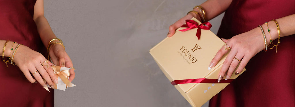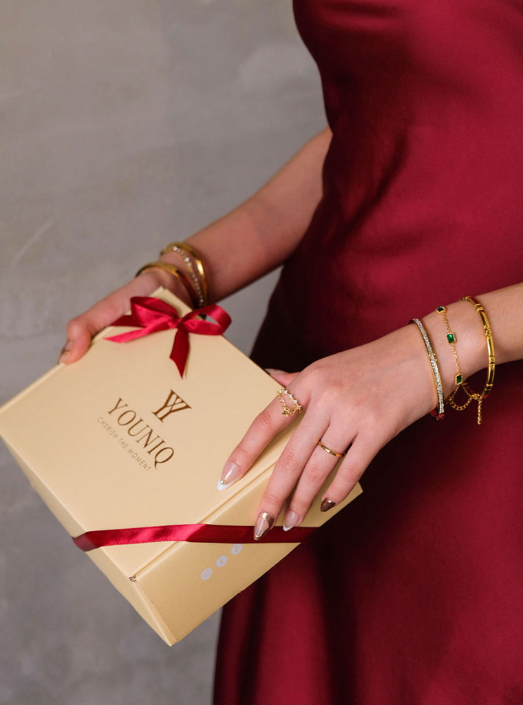 A selection of YOUNIQ jewellery can be personalized to mark a precious moment. Surprise your loved on with a curated gift box.