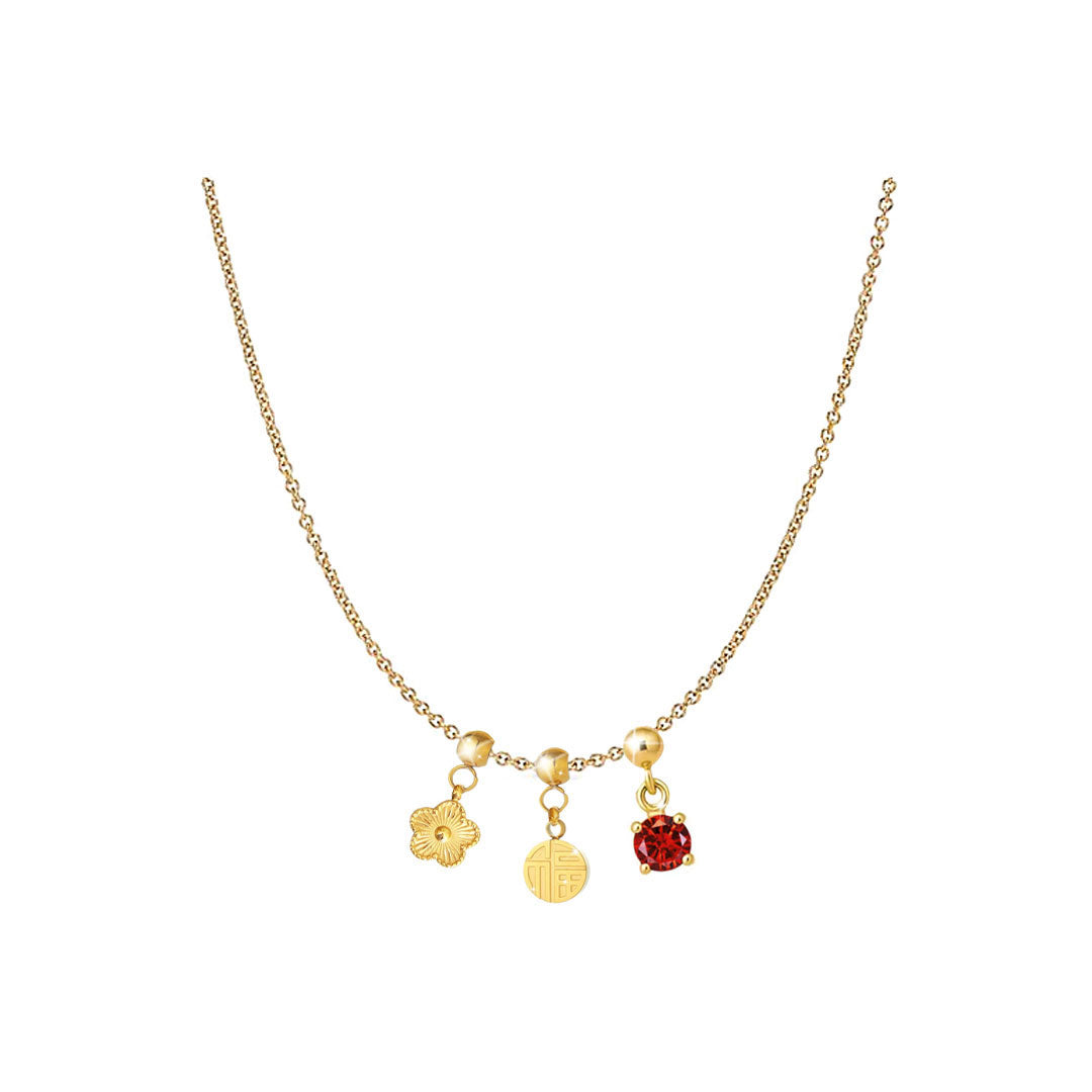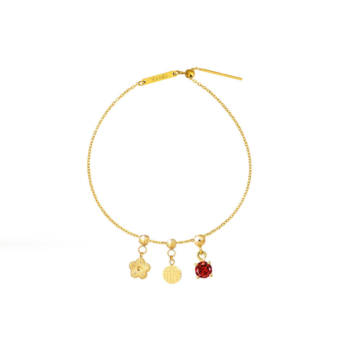 YOUNIQ Abundance Flower Blossom Fu Charm Gold Titanium Bracelet Necklace Customise Charm Bracelet Necklace