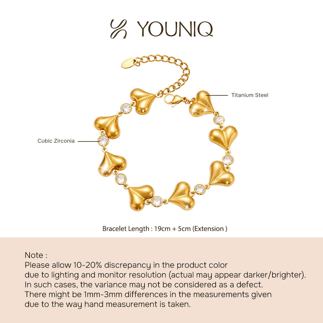 YOUNIQ BELLE 18K Gold Full Big Heart Titanium Bracelet