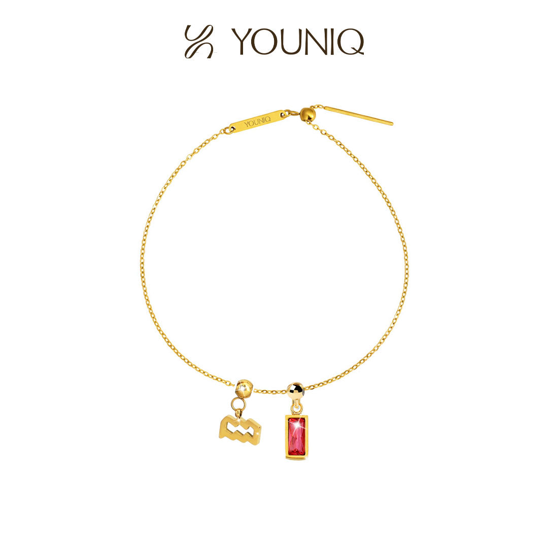 YOUNIQ Destiny July Birthstone Rectagular 18K Gold Titanium Bracelet Necklace Customise Charm Bracelet Necklace