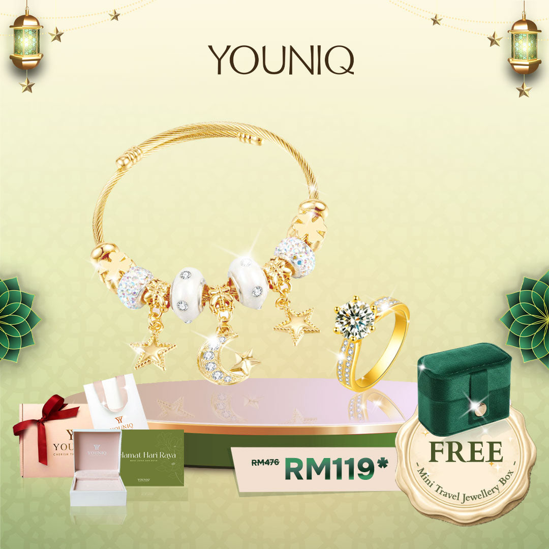 YOUNIQ MERME 18K Gold Titanium Bracelet & Ring Set 2026 Ramadan Raya Gift Ideas Gift Set