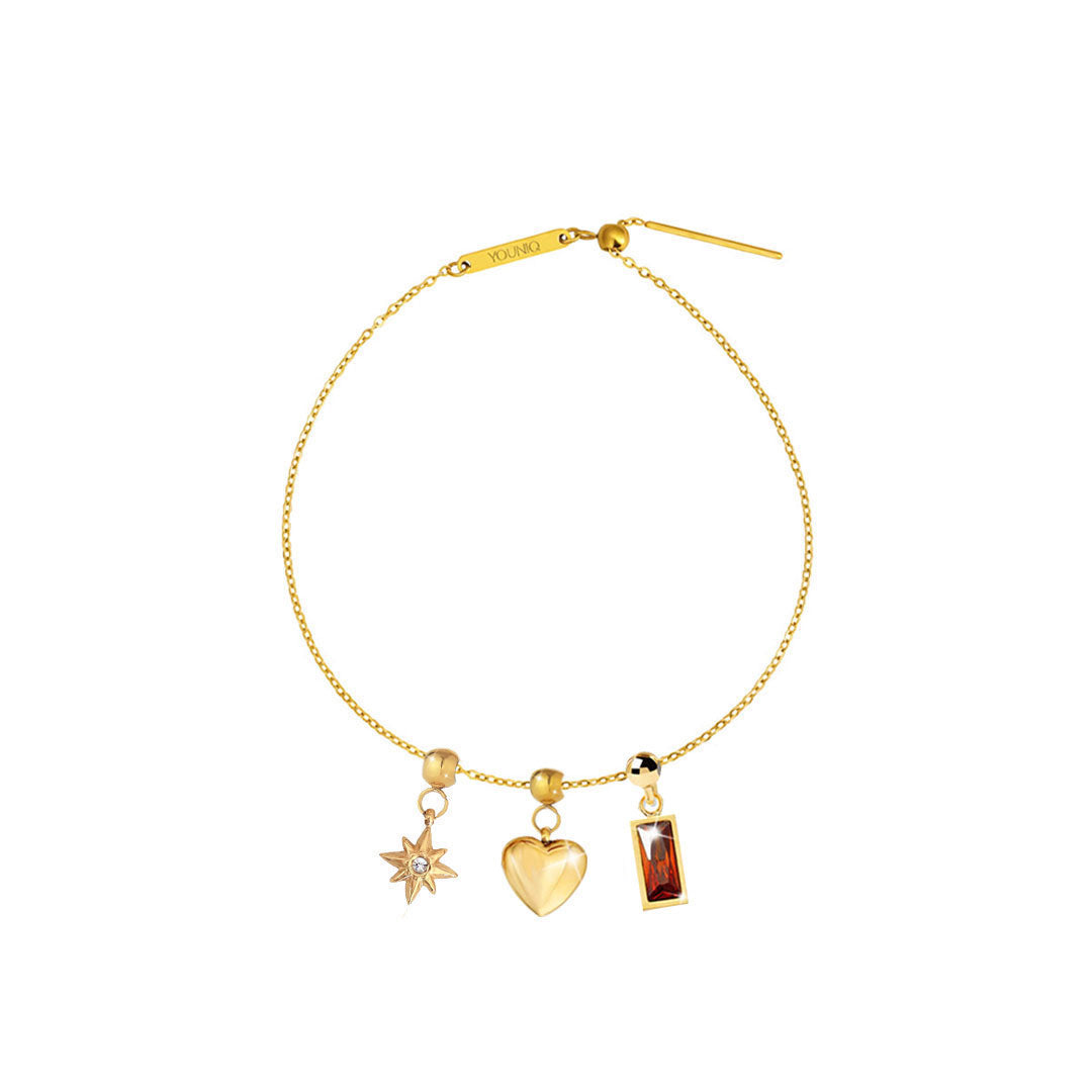 YOUNIQ Passion Spark Heart Charm Gold Titanium Bracelet Necklace Customise Charm Bracelet Necklace