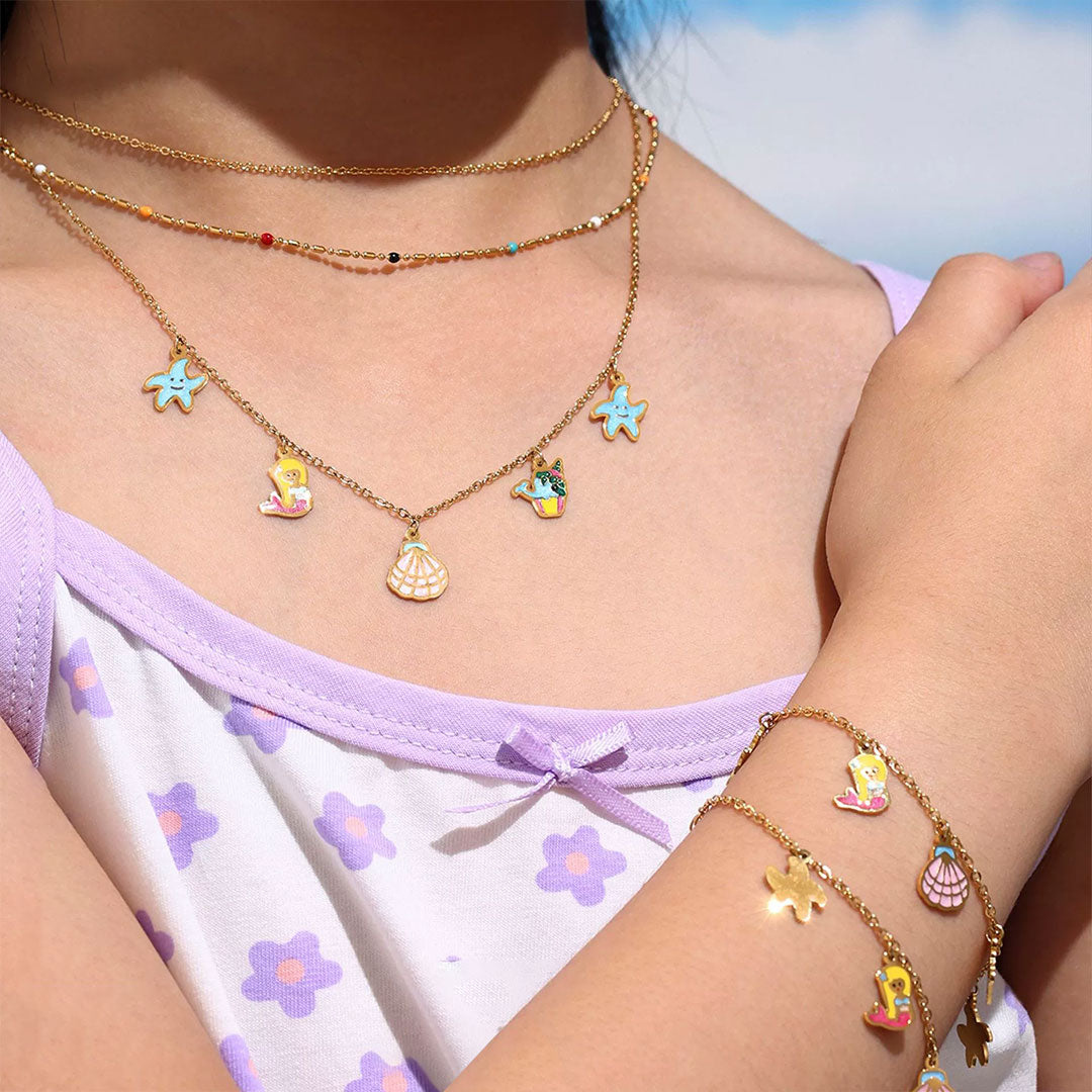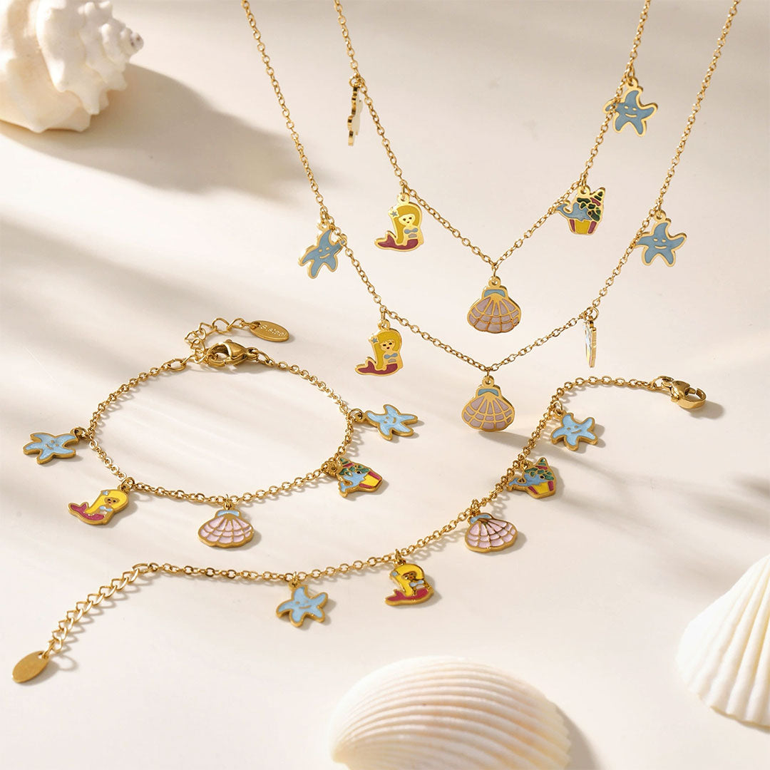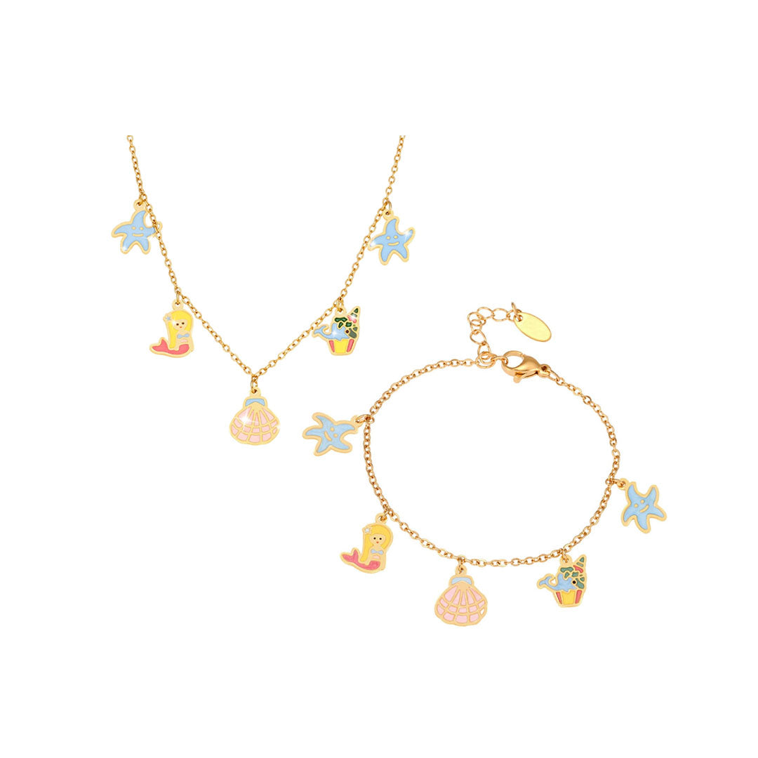 YOUNIQ SEAZ Mermaid Ocean Charm 18K Gold Titanium Necklace & Bracelet Gift Set for Kids