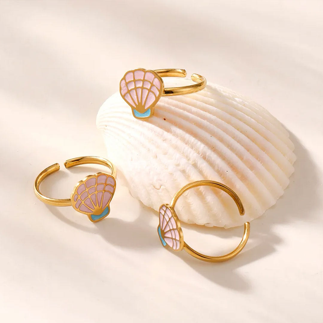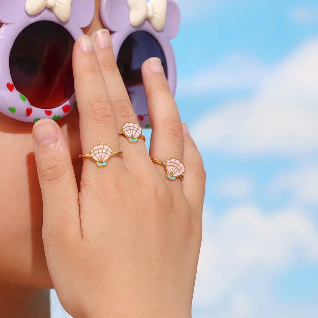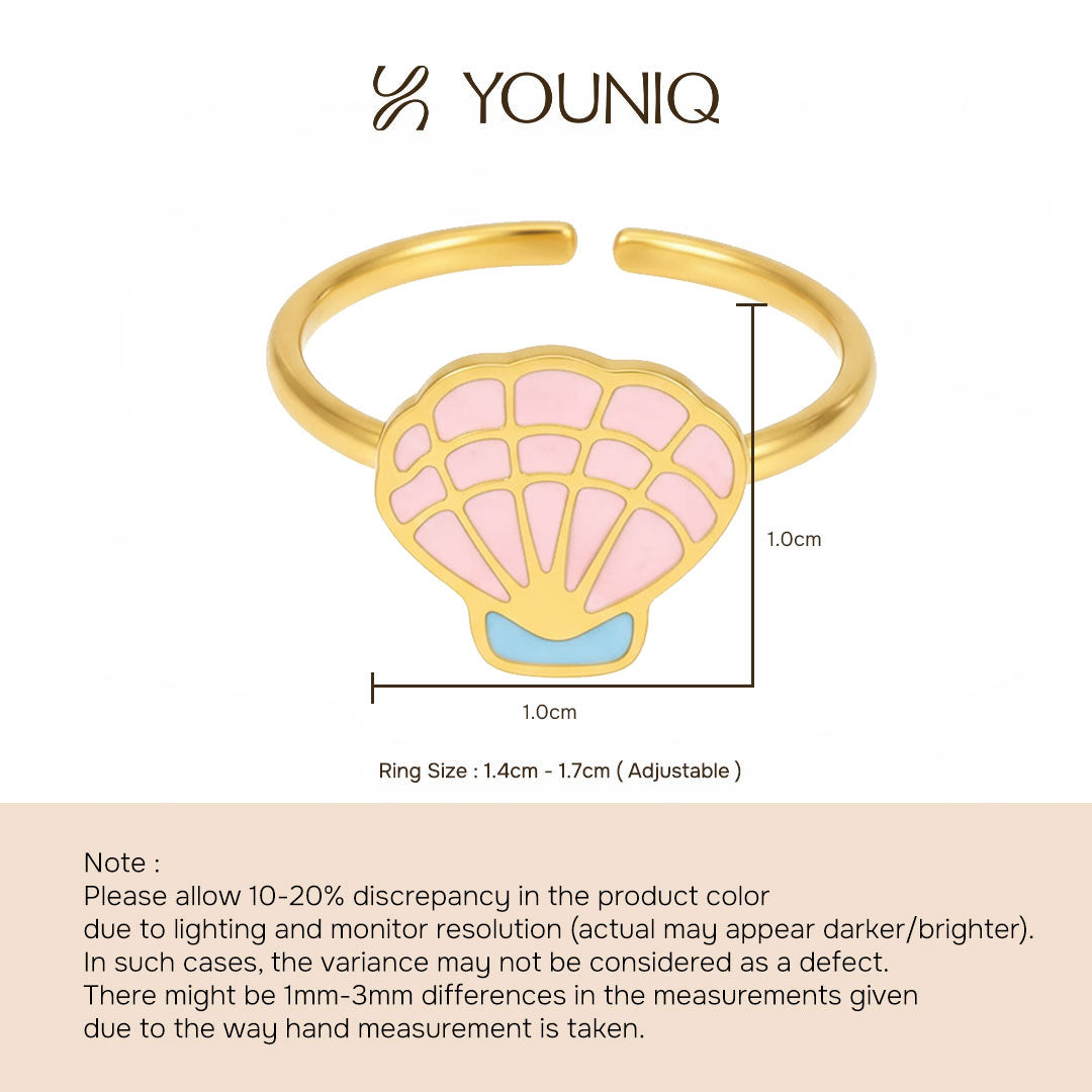 YOUNIQ SHEL Pink Seashell 18K Gold Titanium Ring for Kids RIng Kids Ring Girl