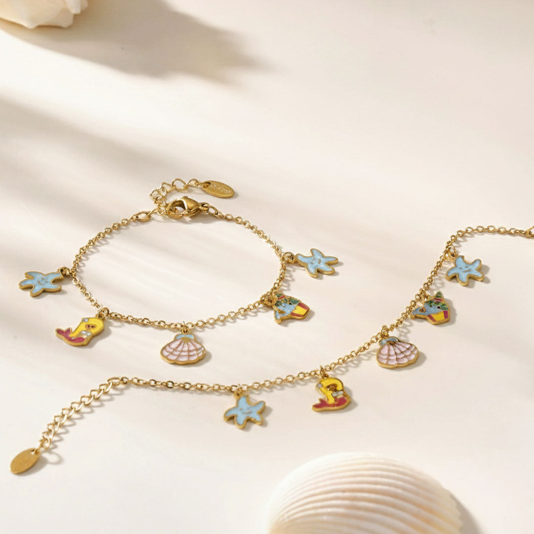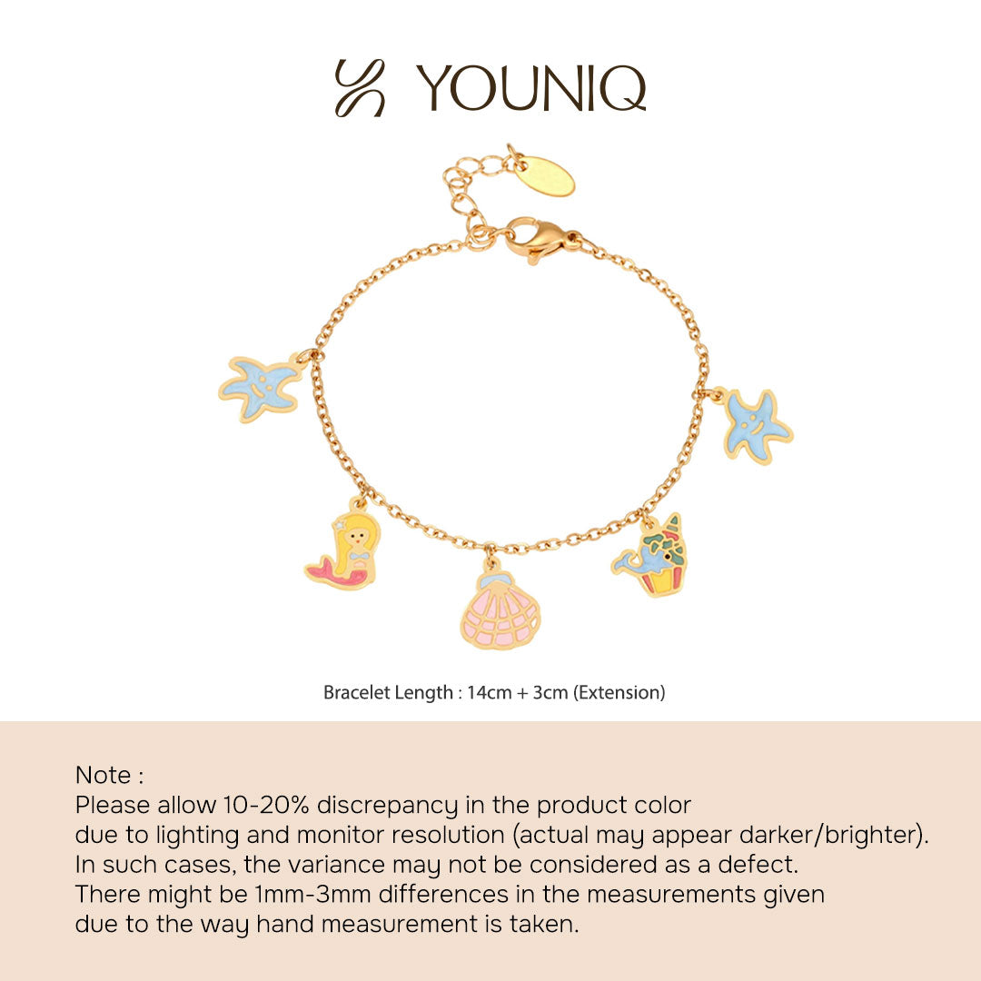 YOUNIQ SEAZ Mermaid Ocean Charm 18K Gold Titanium Bracelet for Kids Bracelet