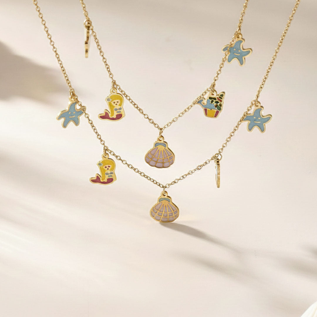 YOUNIQ SEAZ Mermaid Ocean Charm 18K Gold Titanium Necklace for Kids Necklace