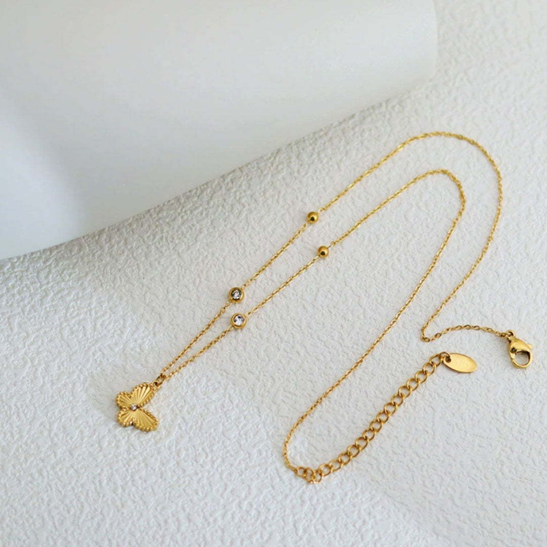 AILEEN 18K Gold Titanium Butterfly Necklace with Cubic Zirconia