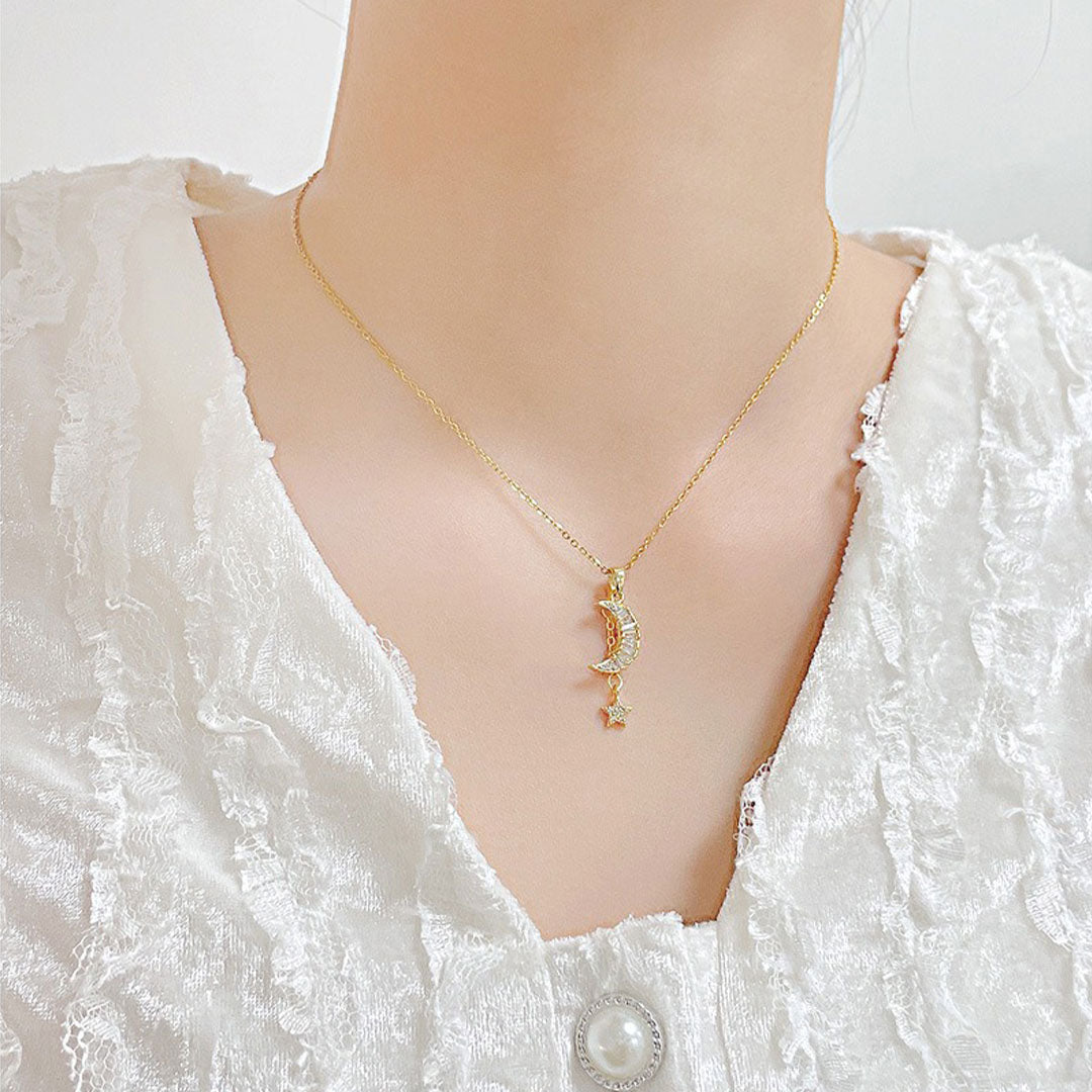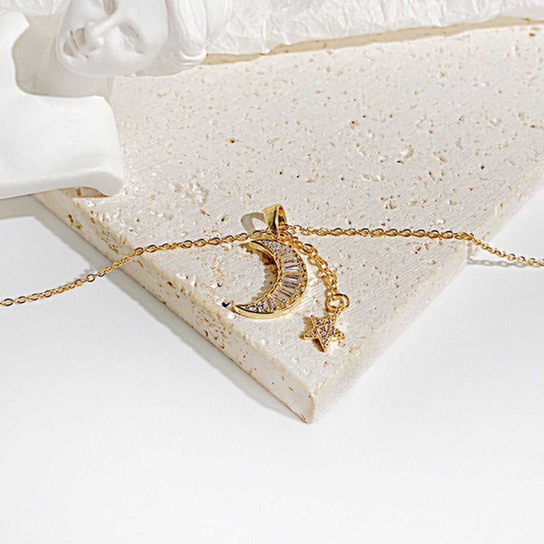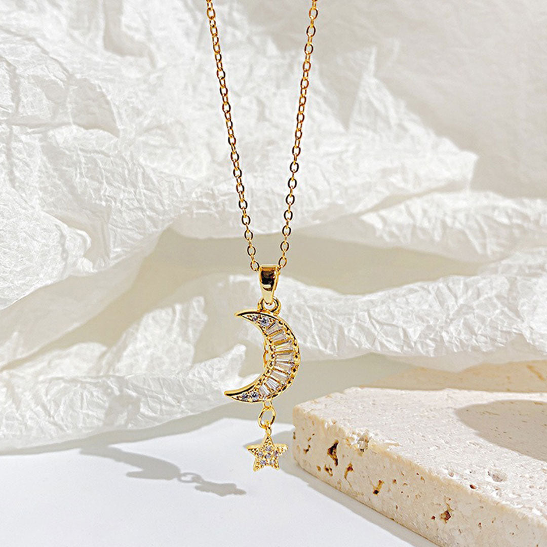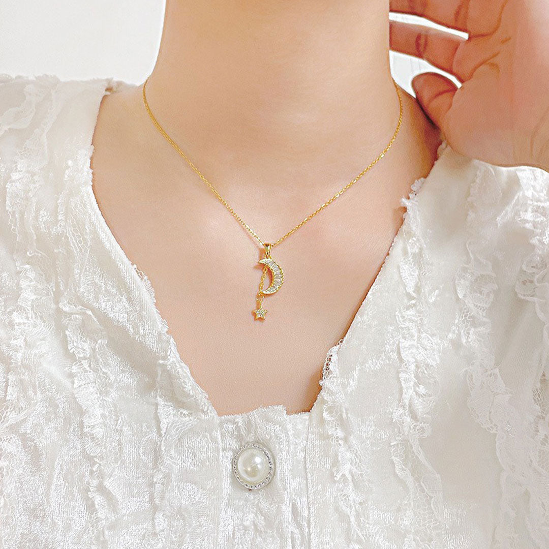 CLAIRE 18K Gold Titanium Moon & Star Necklace
