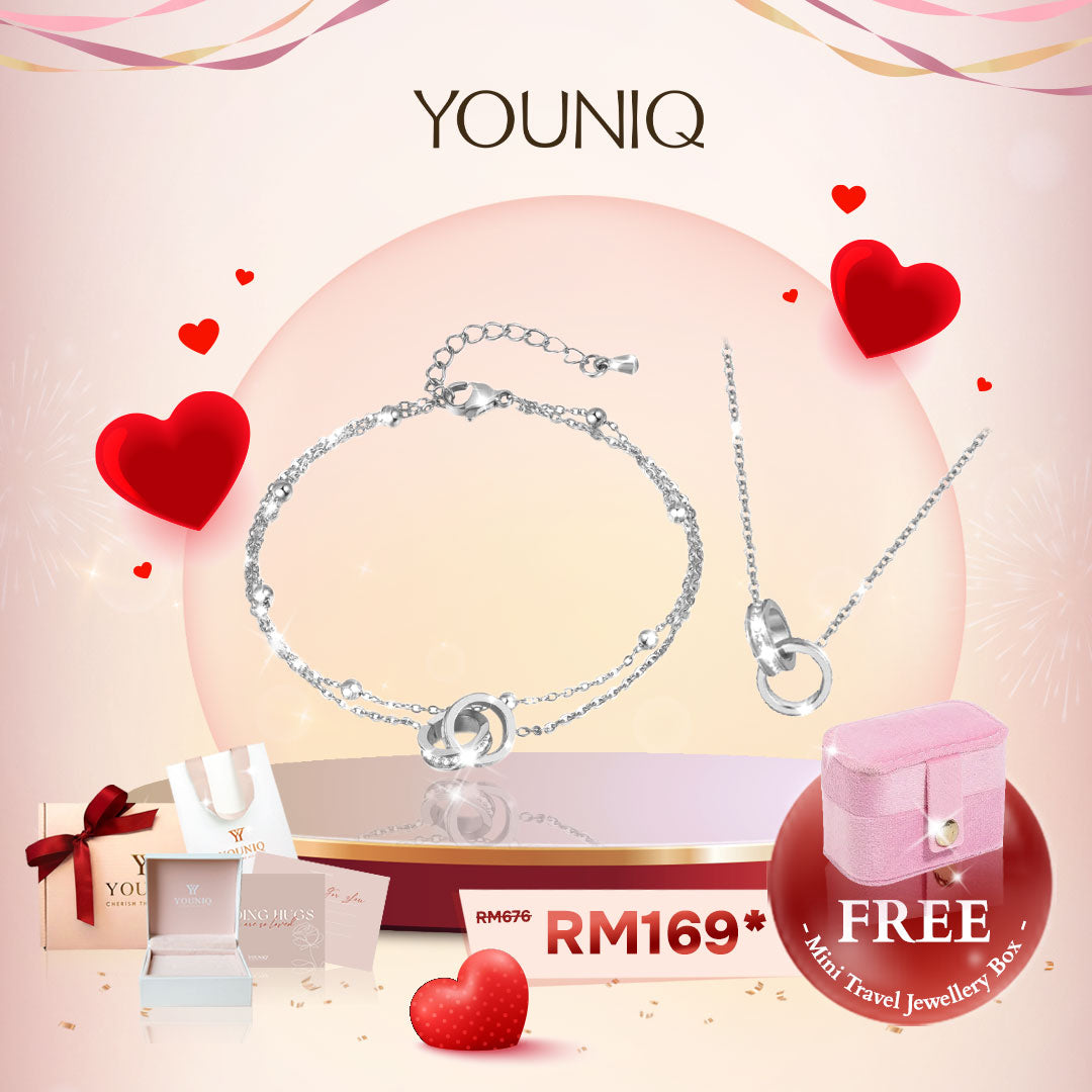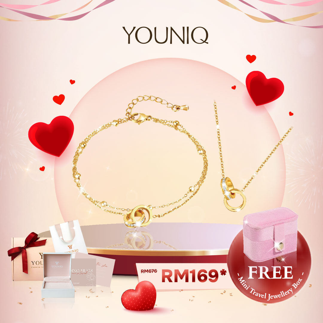 YOUNIQ Connect 2.0 18K Gold Titanium 2026 Vday Gift Set Bracelet & Necklace with Cubic Zirconia