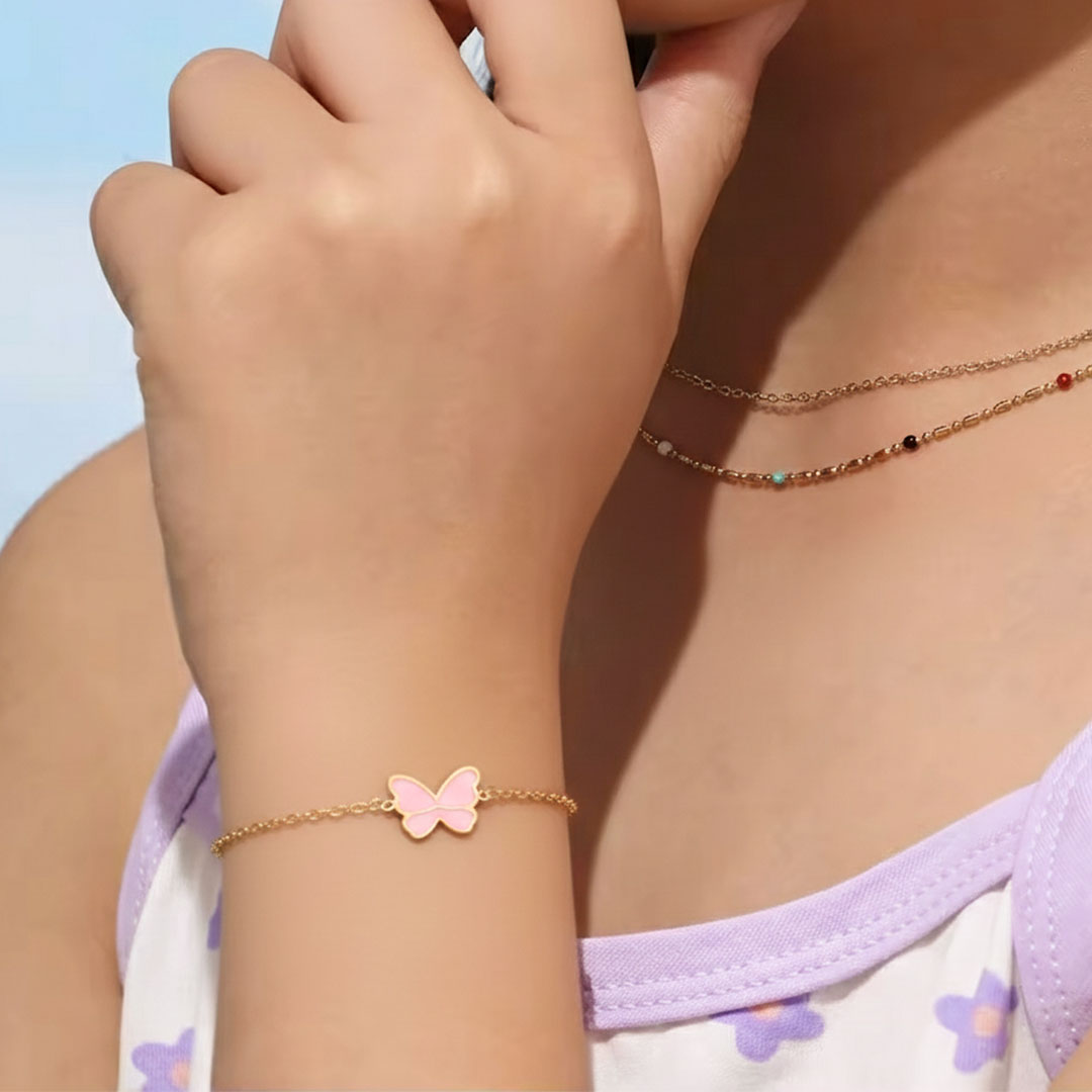 YOUNIQ BFLY Pink Butterfly 18K Gold Titanium Bracelet for Kids Bracelet