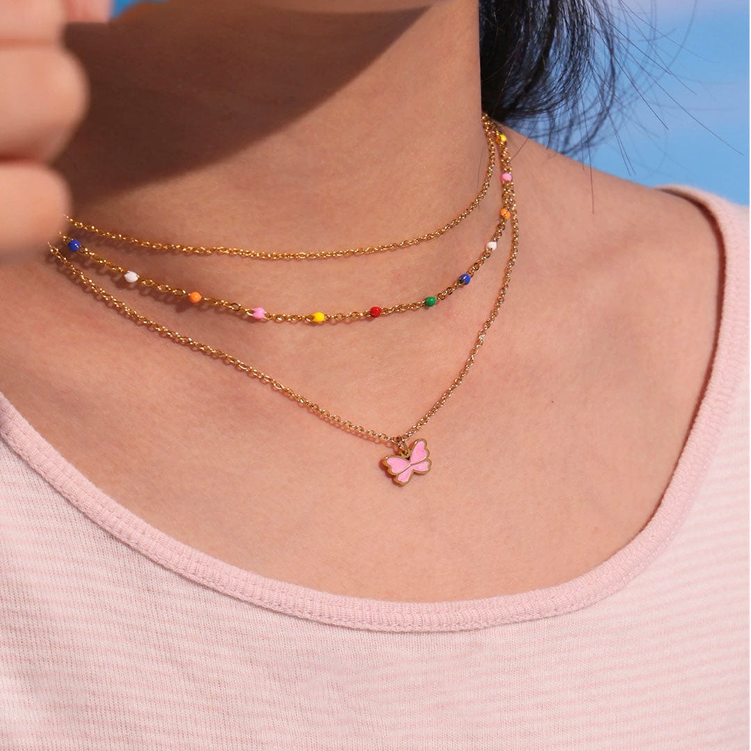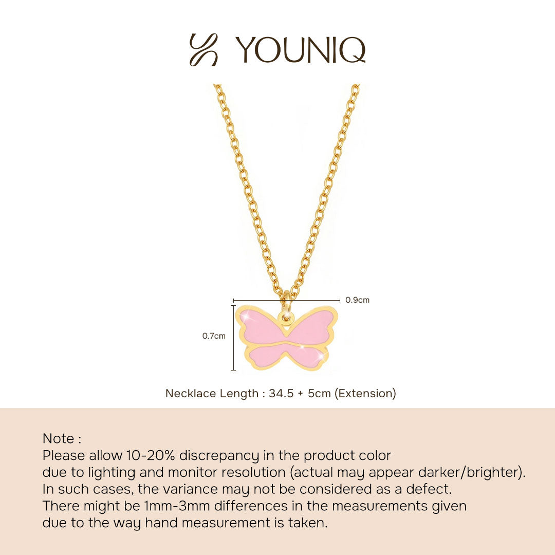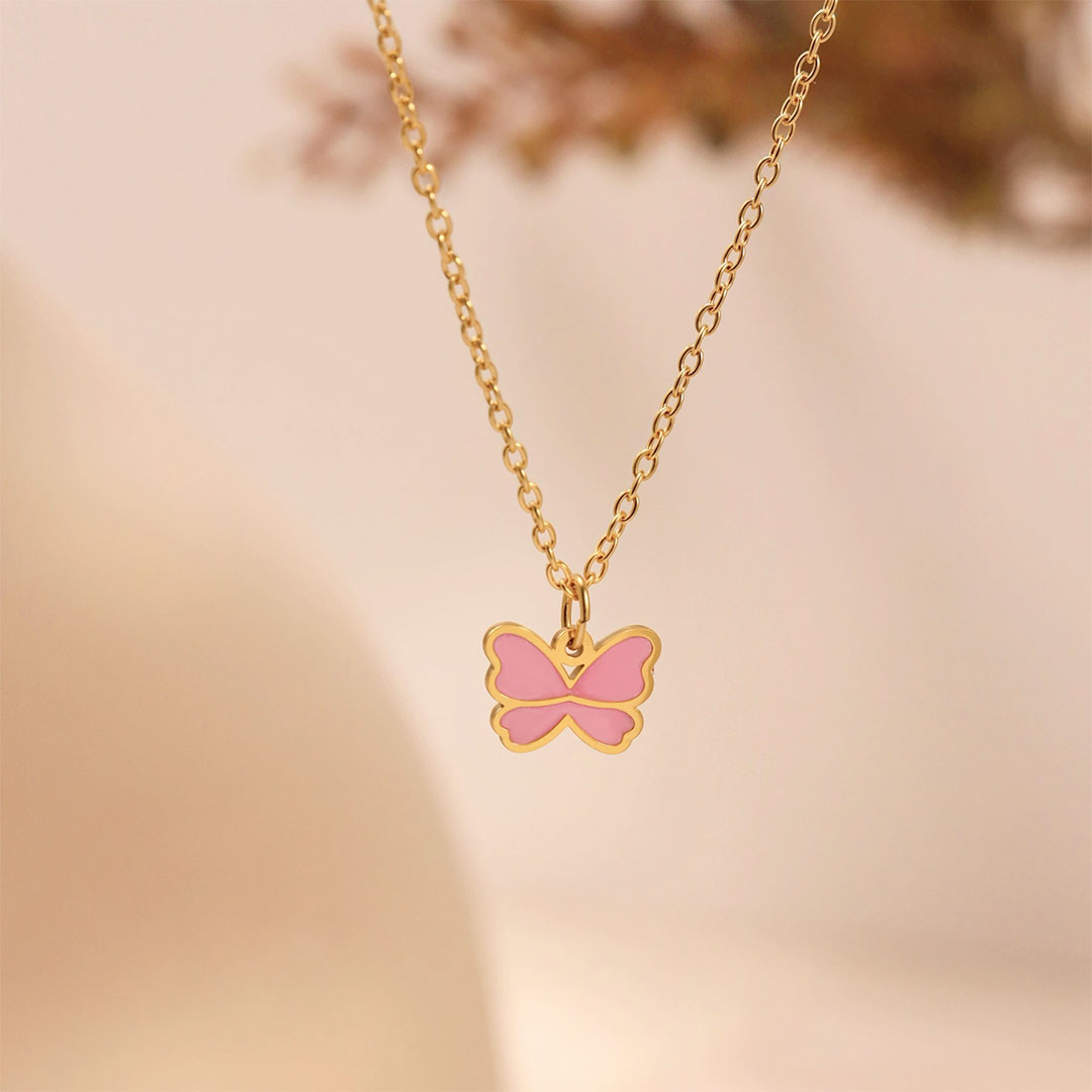 YOUNIQ BFLY Pink Butterfly 18K Gold Titanium Necklace for Kids Necklace