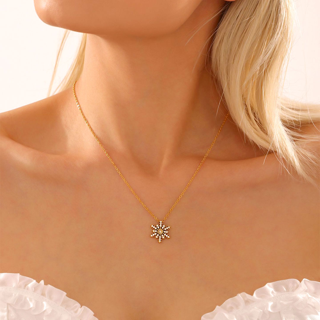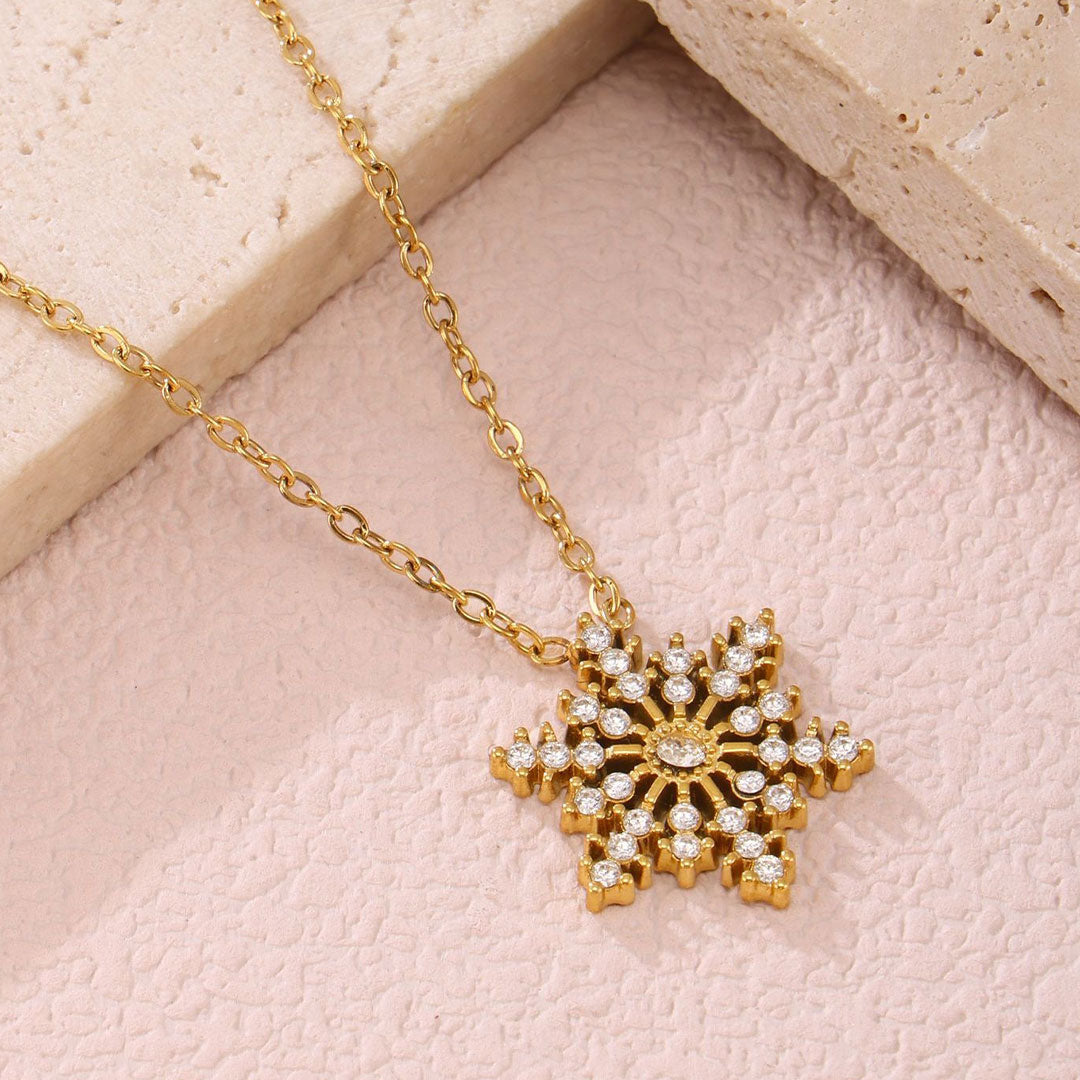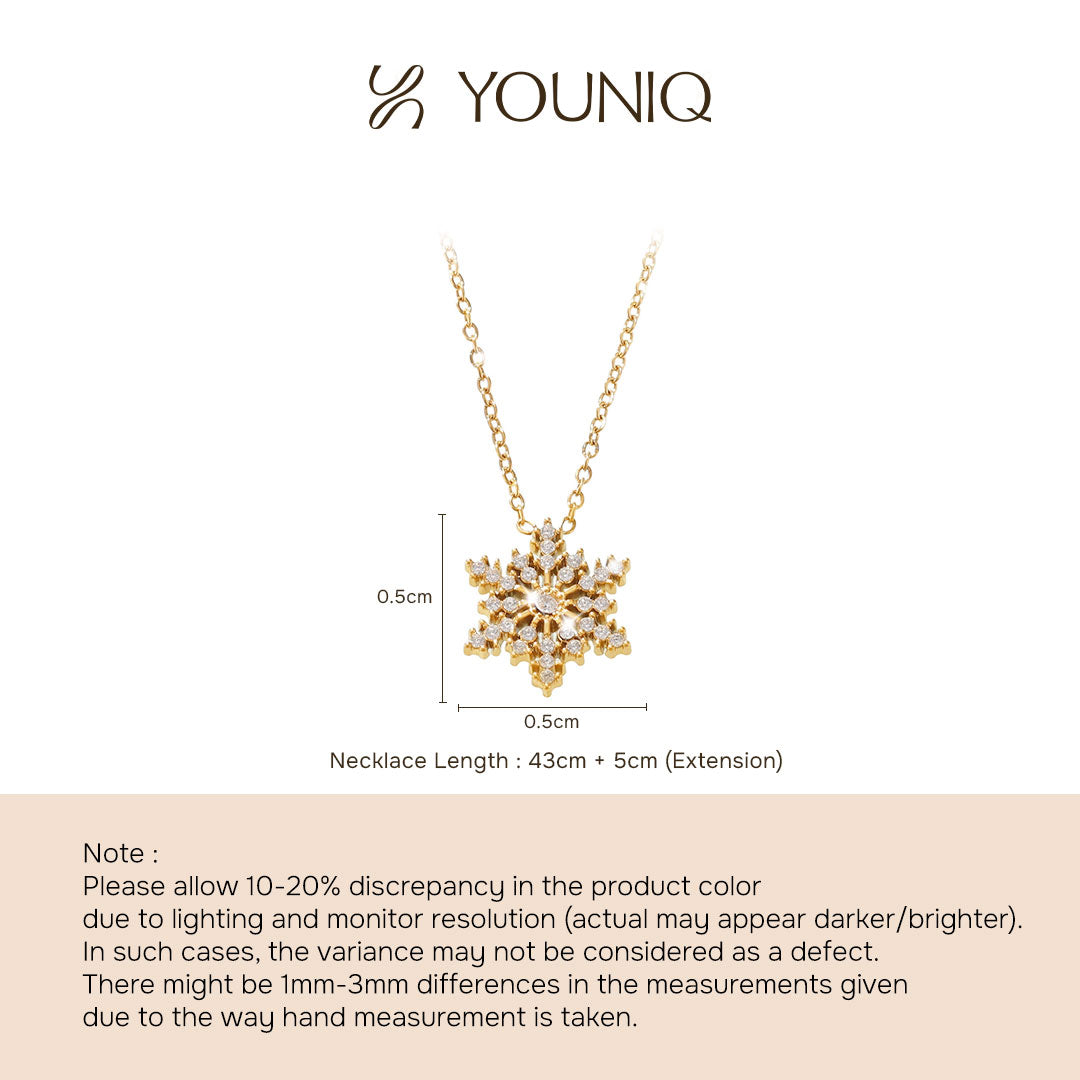 YOUNIQ ELSA Snowflake 18K Gold Titanium Necklace with Cubic Zirconia Necklace for Woman