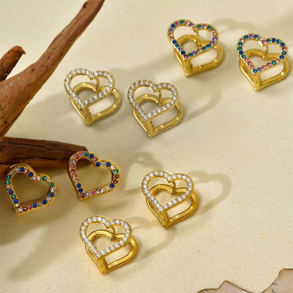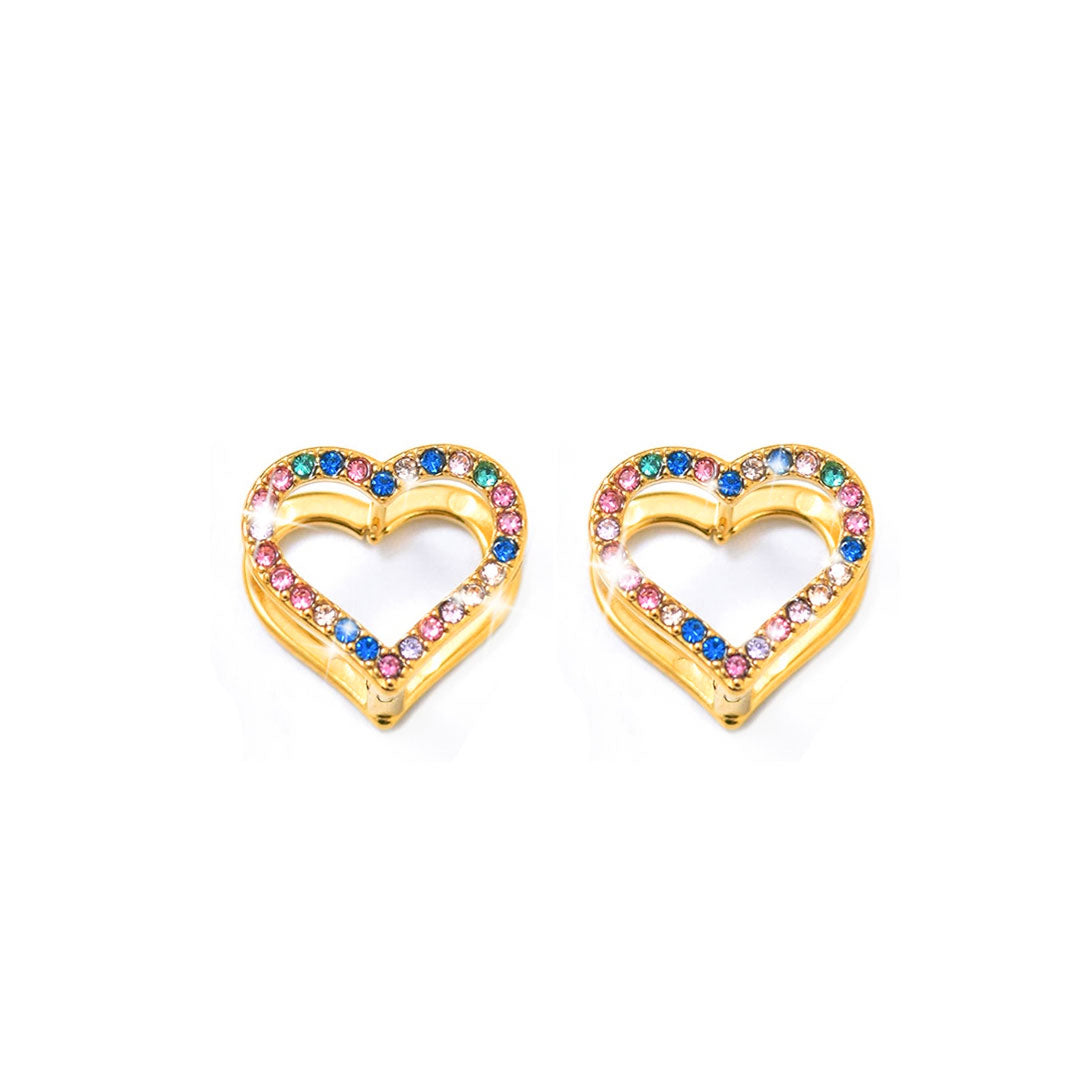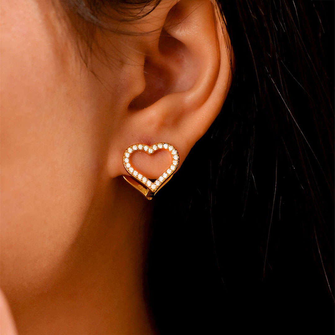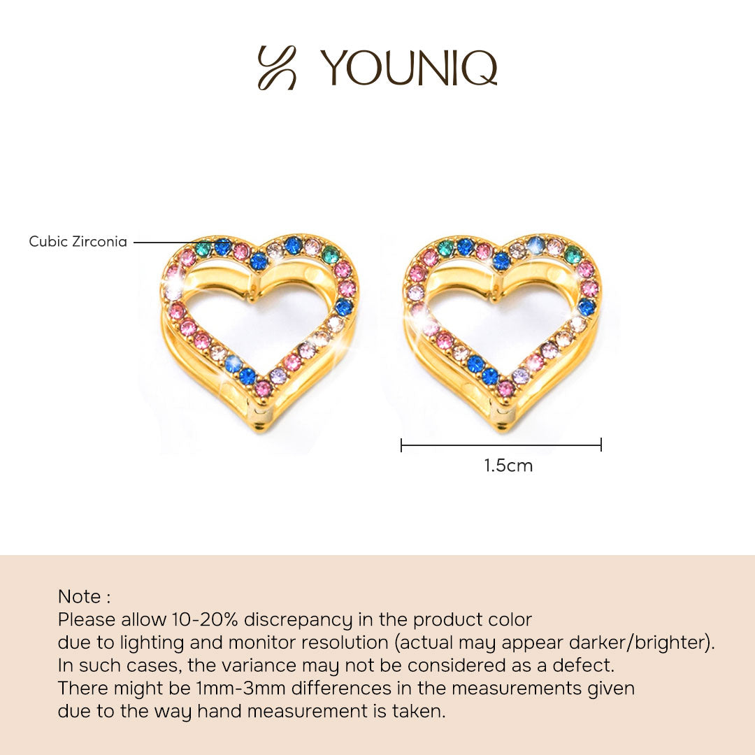 YOUNIQ JSOO 18K Gold Titanium Steel Open Heart Earrings with Cubic Zirconia