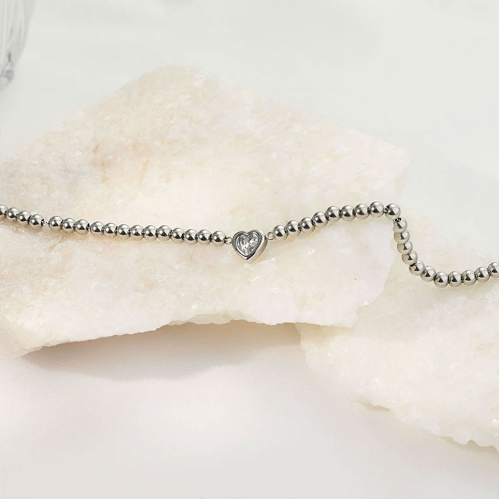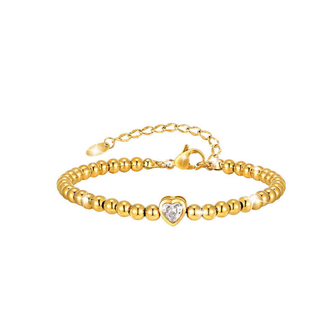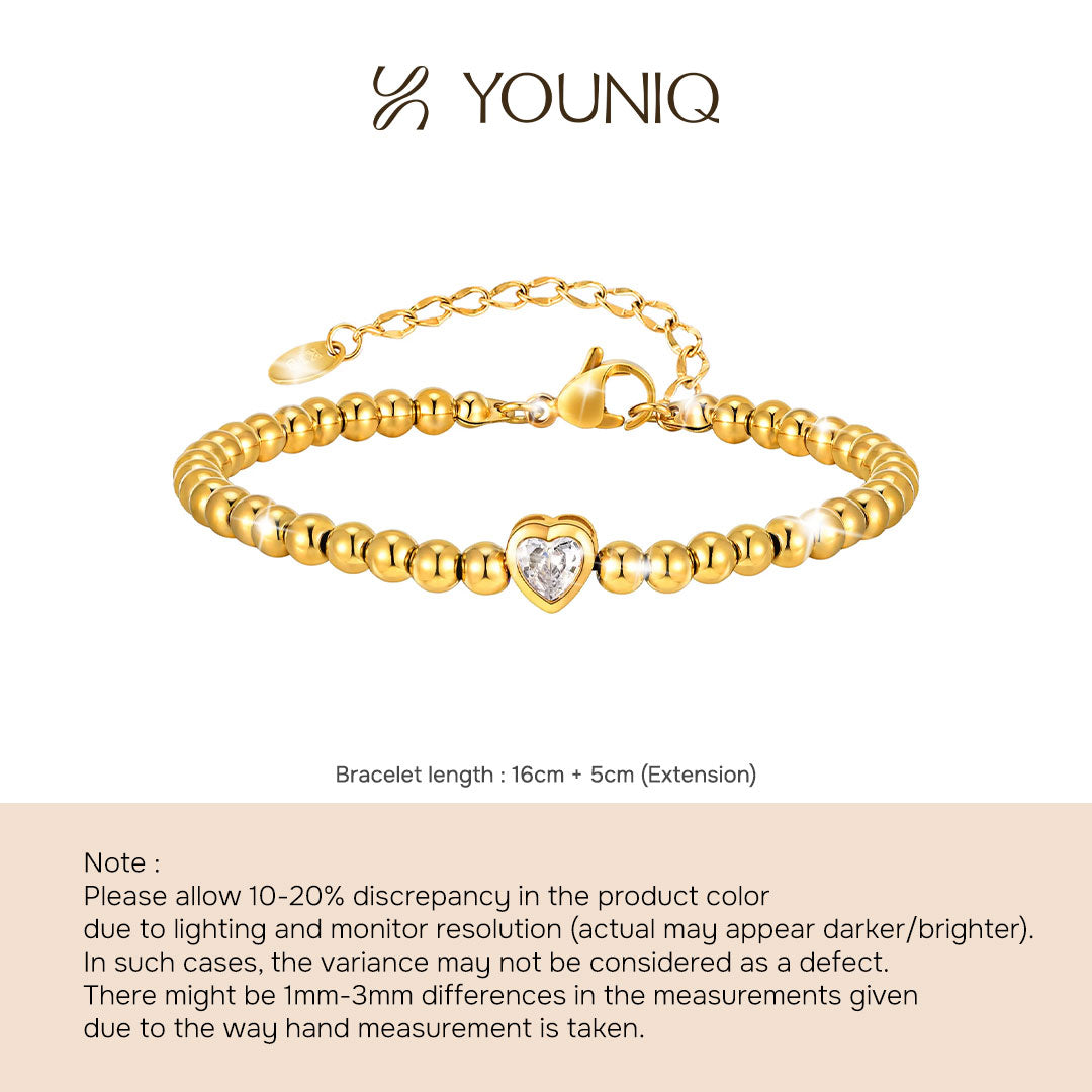 YOUNIQ REVA Heart 18K Gold Titanium Steel Boba Bracelet with Cubic Zirconia EG