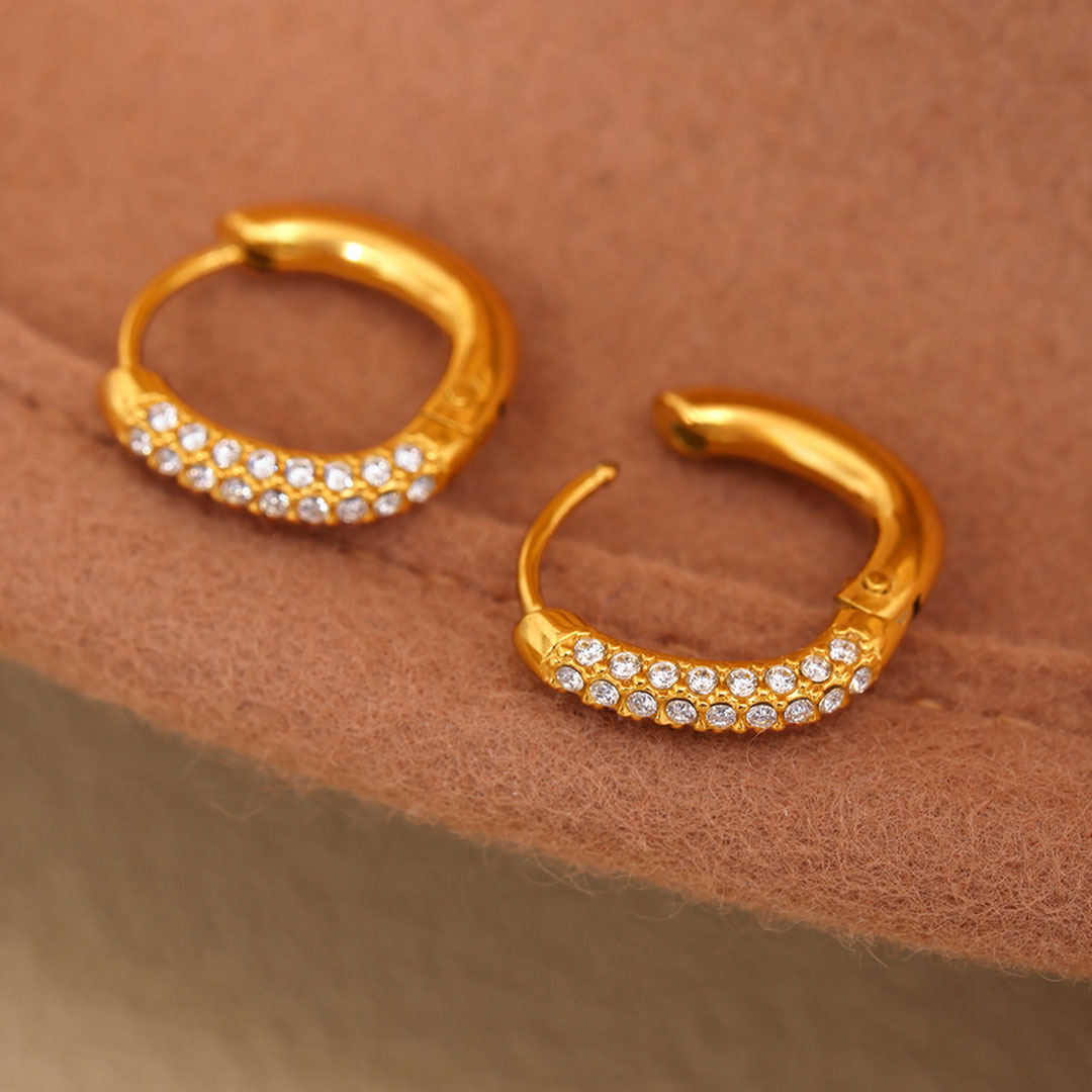 YOUNIQ RYNA 18K Gold / Silver Titanium Steel Hoop Earrings with Cubic Zirconia