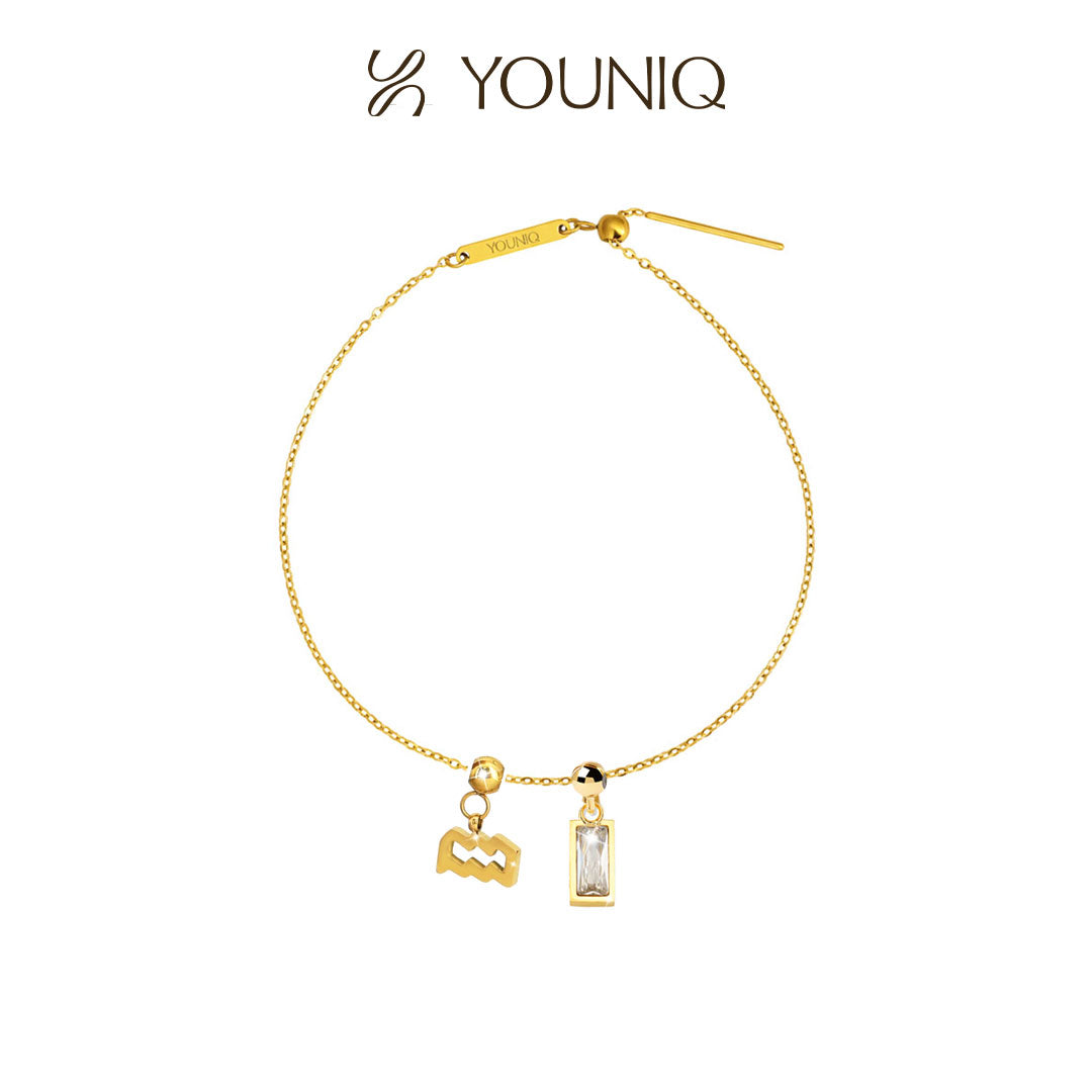 YOUNIQ Destiny April Birthstone Rectagular 18K Gold Titanium Bracelet Necklace Customise Charm Bracelet Necklace