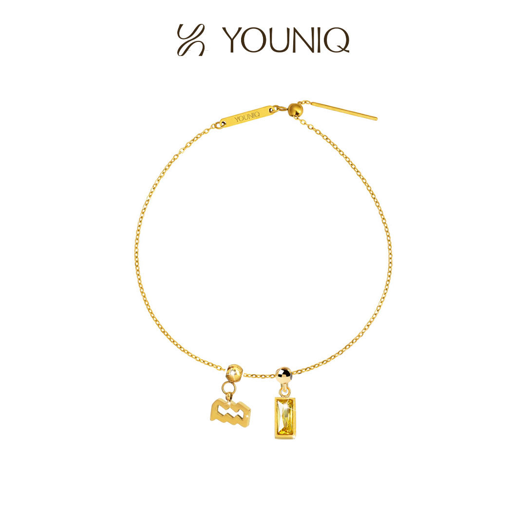 YOUNIQ Destiny November Birthstone Rectagular 18K Gold Titanium Bracelet Necklace Customise Charm Bracelet Necklace