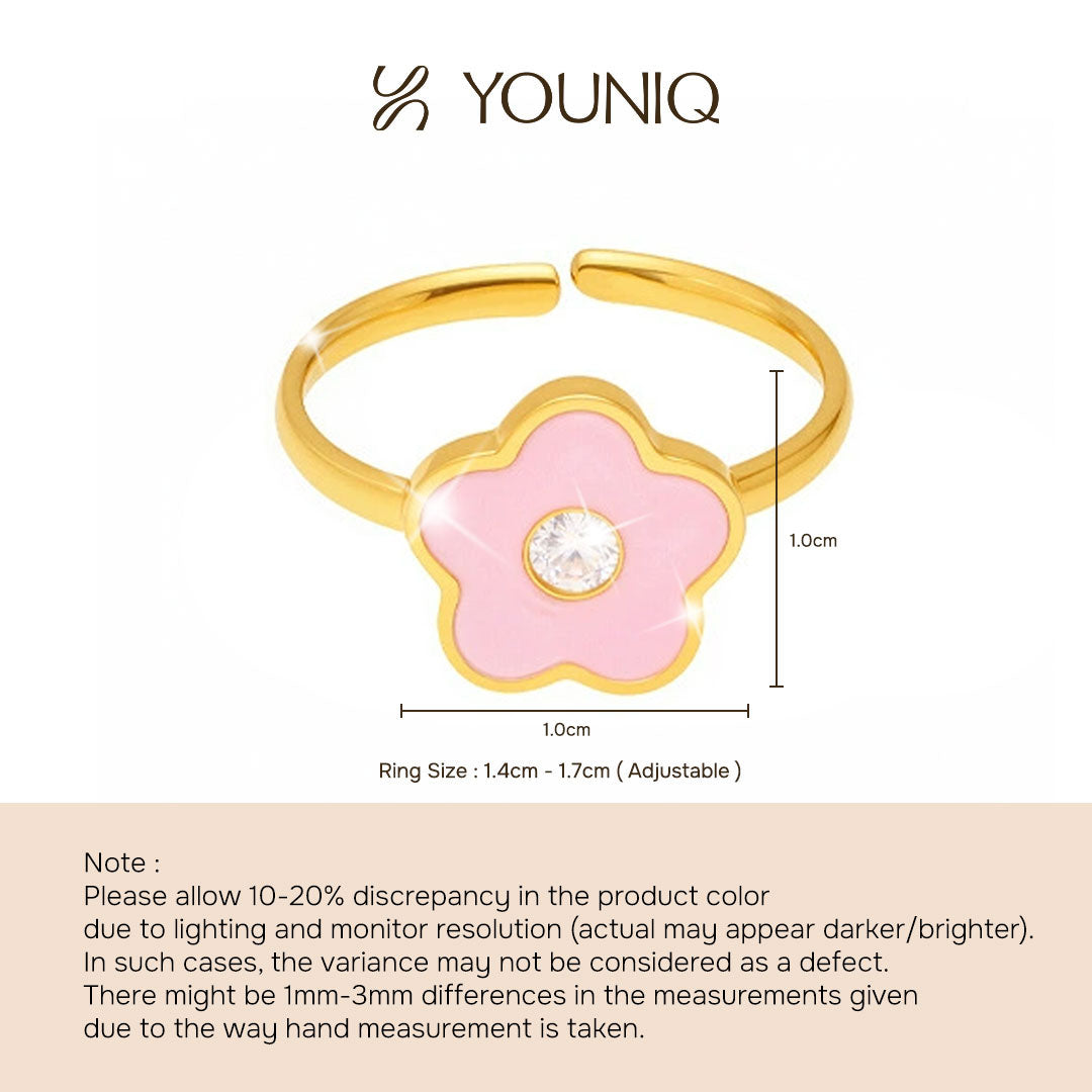 YOUNIQ FLOE Pink Flower 18K Gold Titanium Necklace, Bracelet & Ring Gift Set for Kids