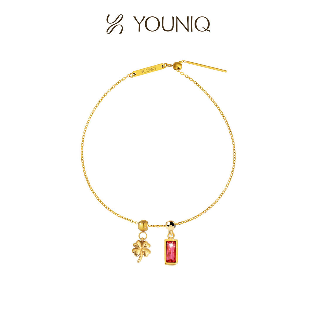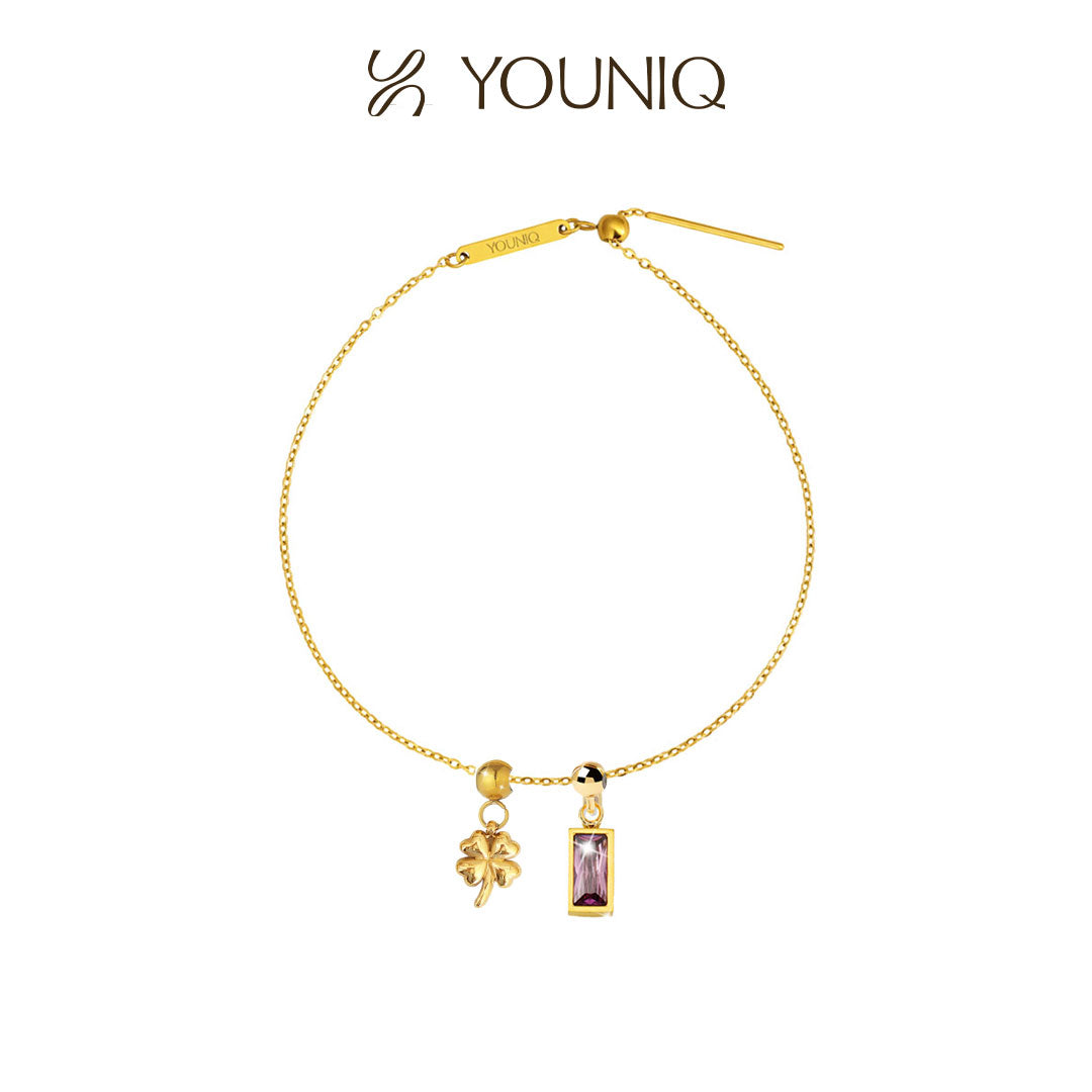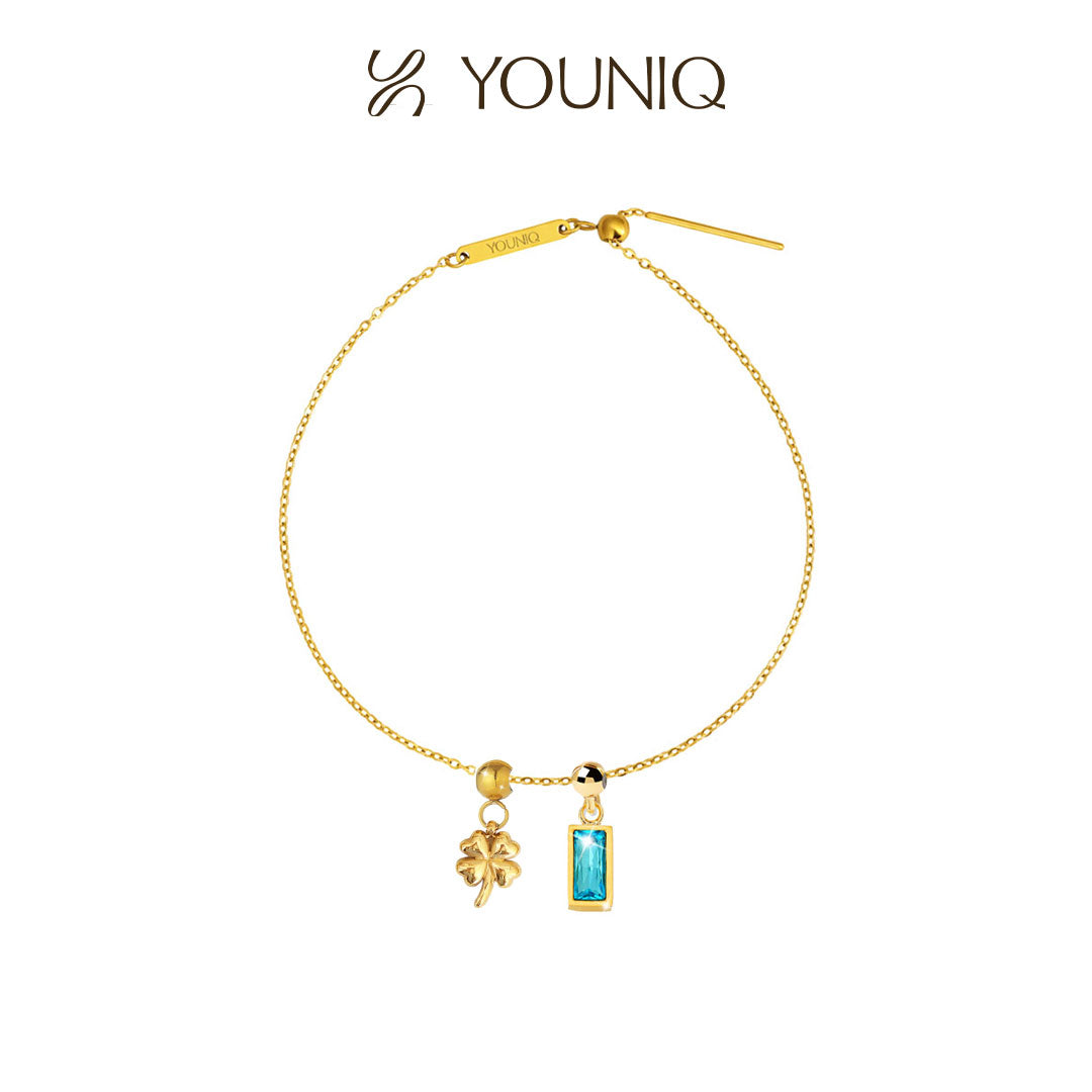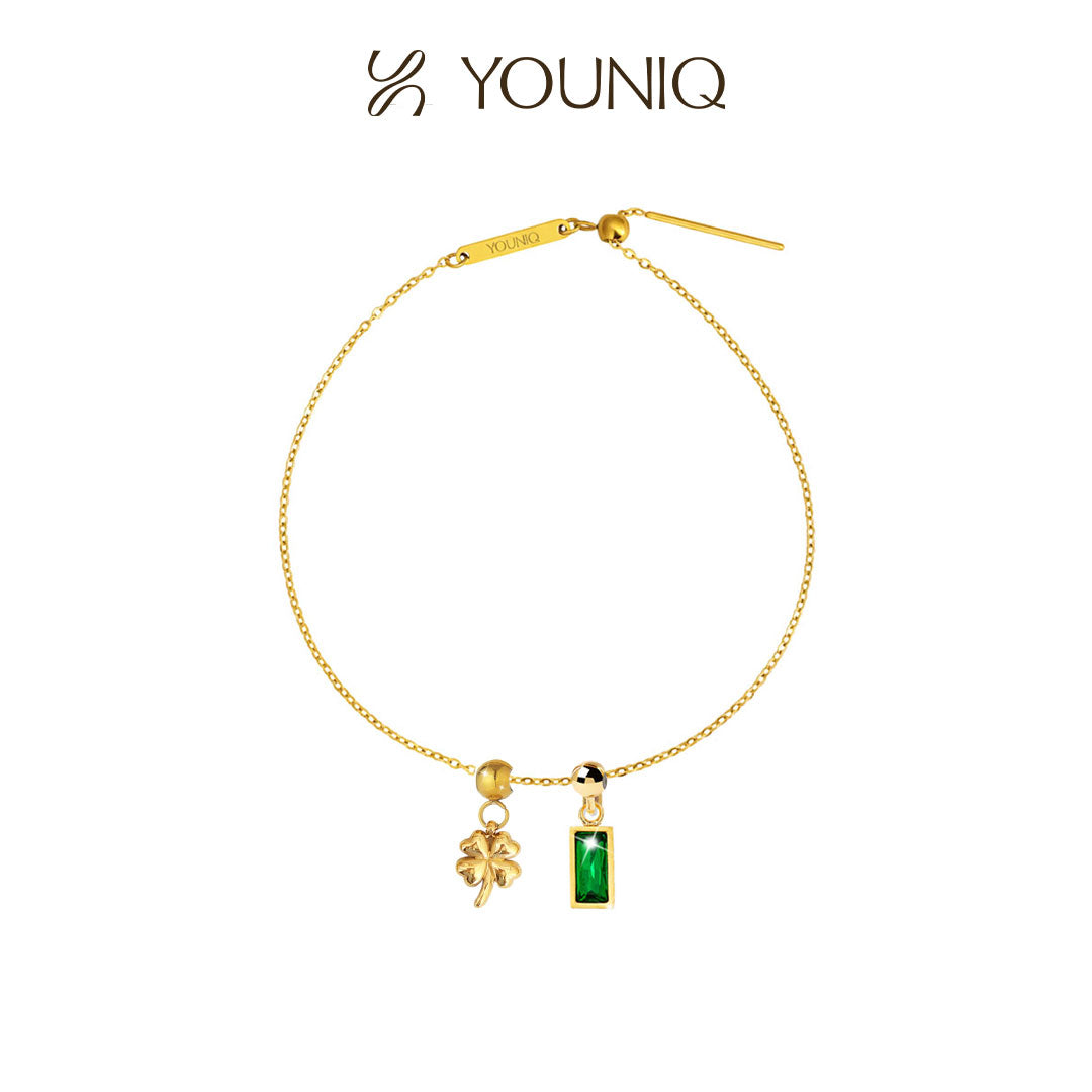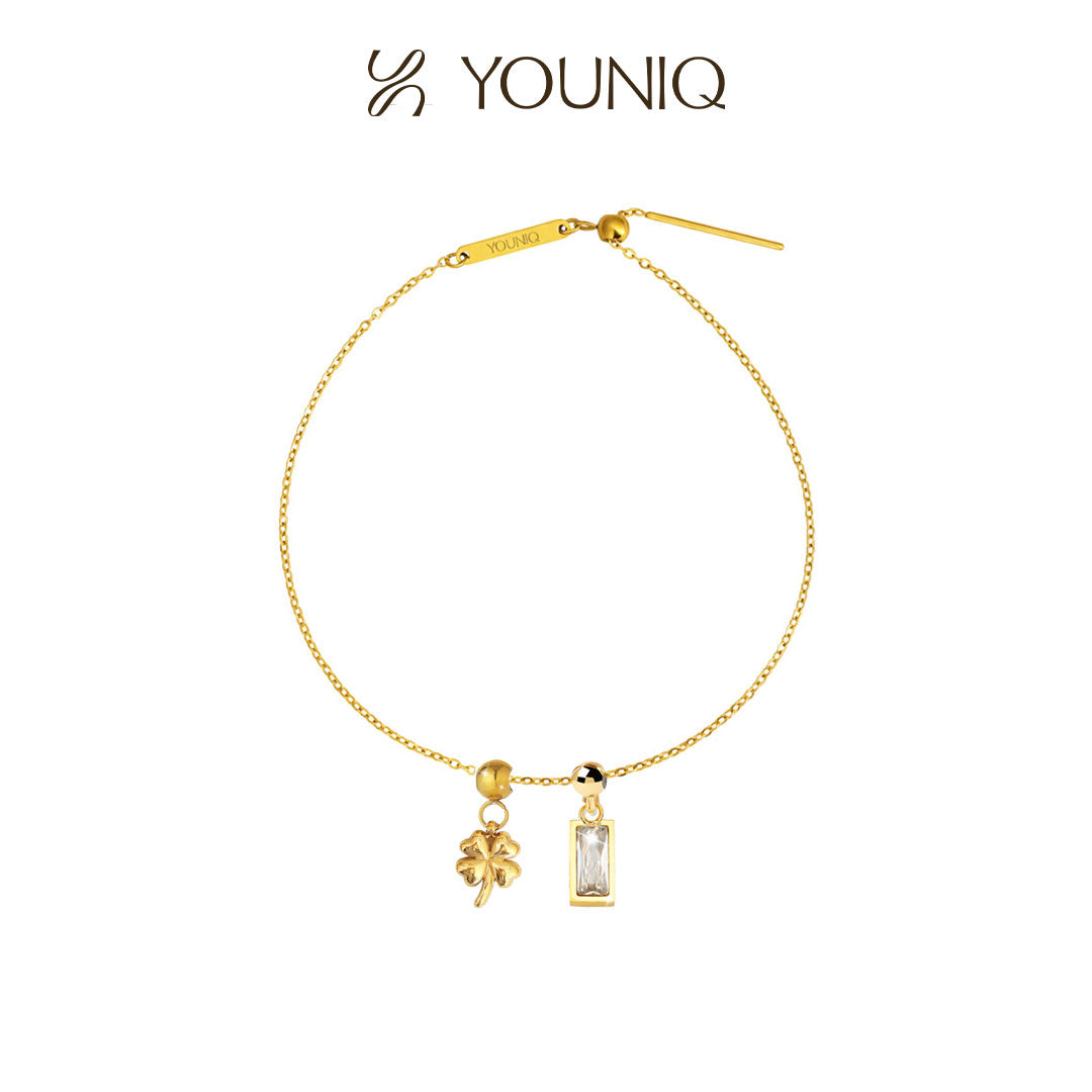 YOUNIQ Gifted Clover Charm Gold Titanium Bracelet Necklace Customise Charm Bracelet Necklace