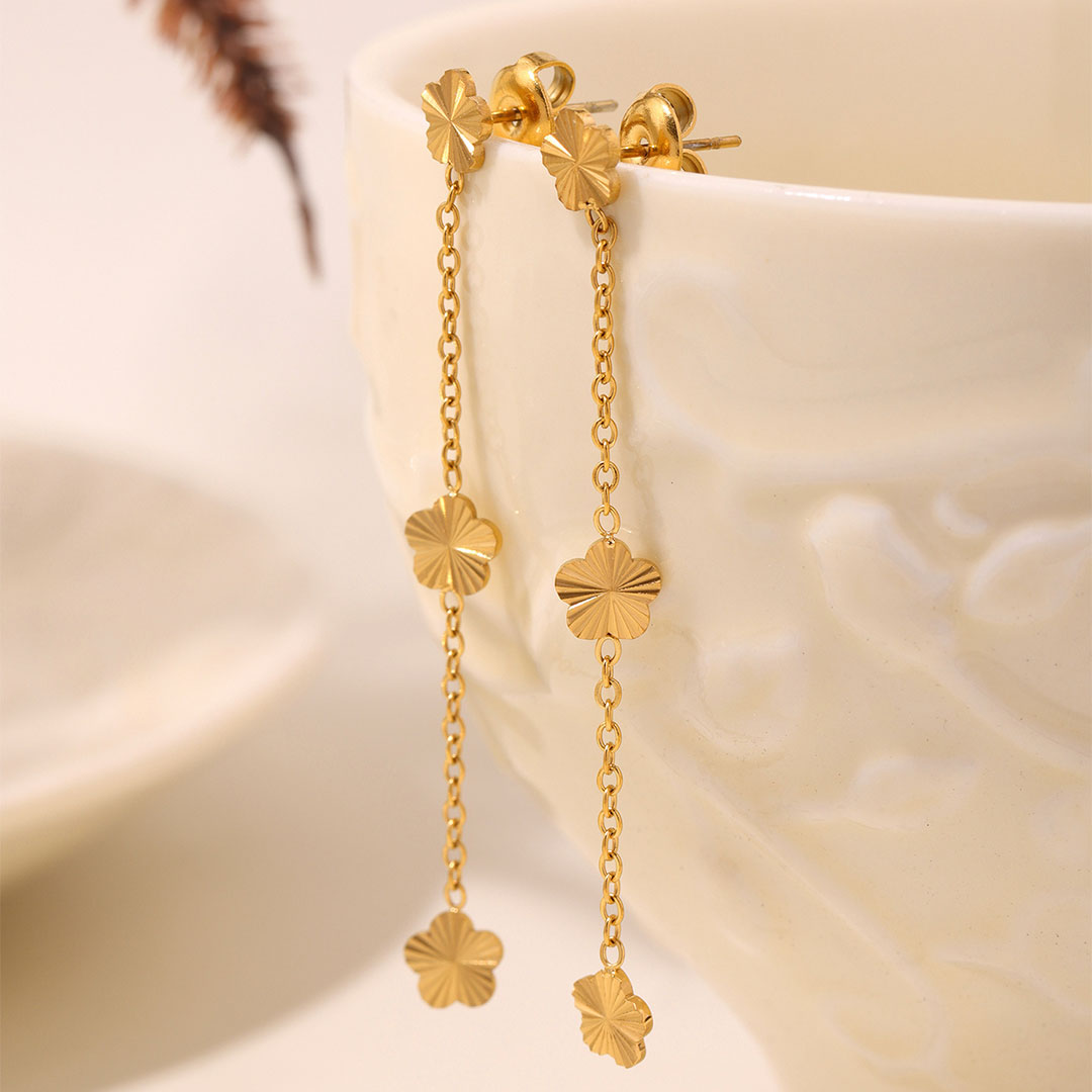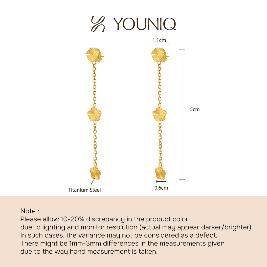 YOUNIQ CHER 18K Gold Titanium Long Dropped Earrings with Flower